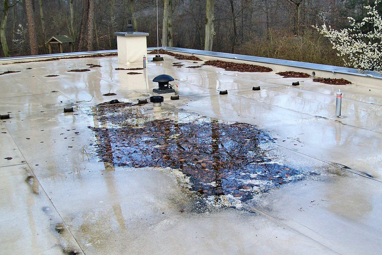 Dachflächen sind im besonderen Maße der Witterung ausgesetzt. UV- und Infrarotstrahlen bewirken eine Alterung. Staub- und Schmutzablagerungen bilden Krusten und können Entwässerungsteile verstopfen. Flugsamen können Pflanzenwuchs zur Folge haben. Spezielle chemische Umweltbelastungen können nachteilige Folgen für die Dachdeckung mit sich bringen. Um den Risiken, die durch diese Belastungen hervorgerufen werden, vorzubeugen, sollten Flachdächer ein- bis zweimal jährlich gereinigt und auf eventuelle entstehende Schadstellen untersucht werden.